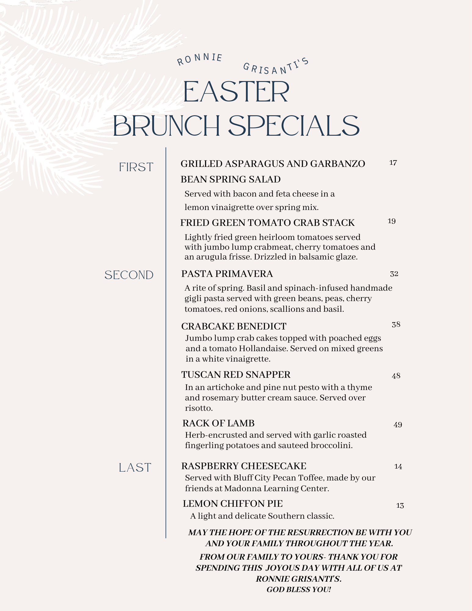 We’ll be serving our full dinner menu plus the following brunch specials from 11:00am-3:00pm. We look forward to celebrating with you! Call us at 901-850-0191 to reserve your table!