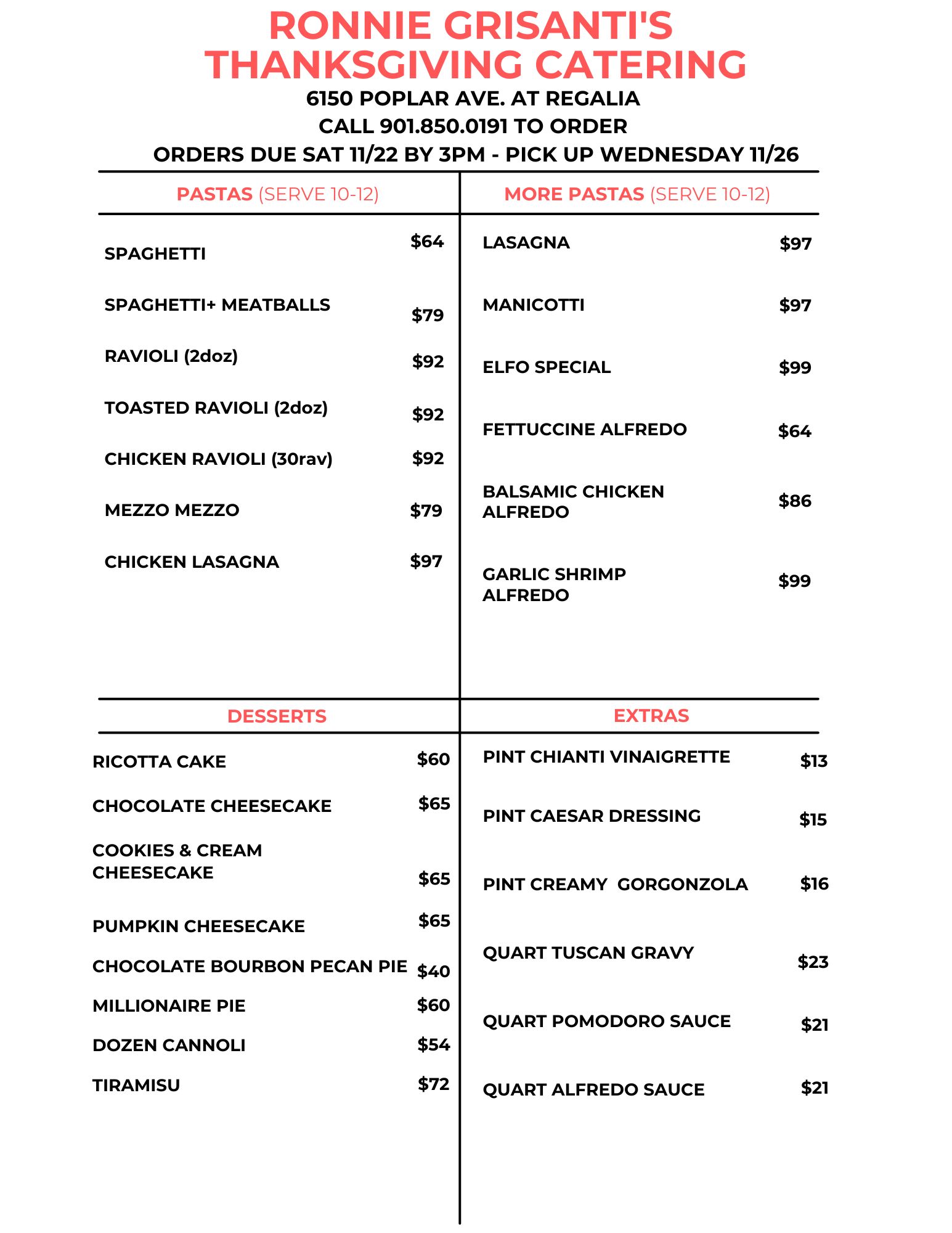 Happy Thanksgiving! We’ve got everything you need (except for the turkey!) Place your order today to pick up Wednesday, November 26.